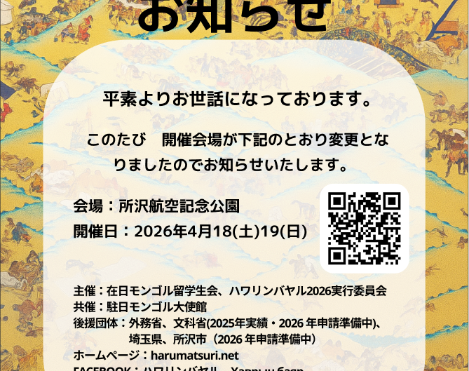 拝 啓 春陽の候、ますますご清栄のこととお慶び申し上げます。日頃より、在日モンゴル留学生会の活動にご […]
